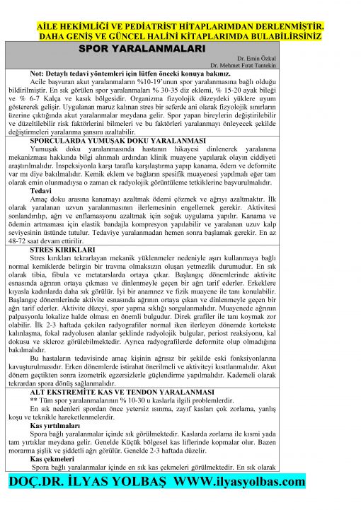 SPOR VEYA AKUT YARALANMALARINDA TEDAVİ YAKLAŞIMI